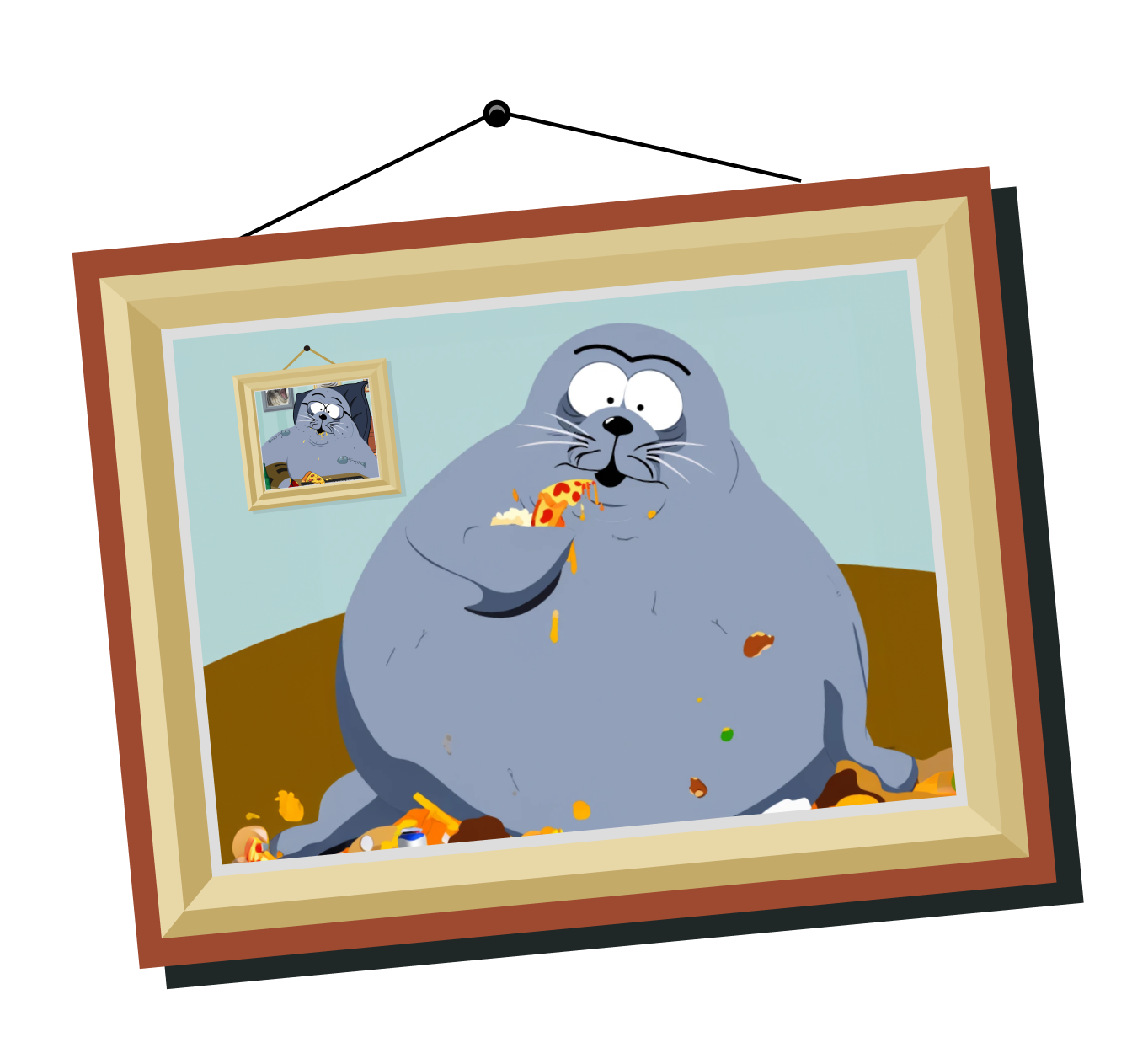 Meet Sealana, the chubby seal who's taken a deep dive into the Solana Sea. Whaled at his PC and growing by the day, Sealana is so absorbed in the degen market that he's abandoned the gorgeous figure of his youth for a trader’s diet of chips and tinned tuna. His obsession with finding the next big Solana meme coin keeps his flippers busy and his living room a big fat mess.